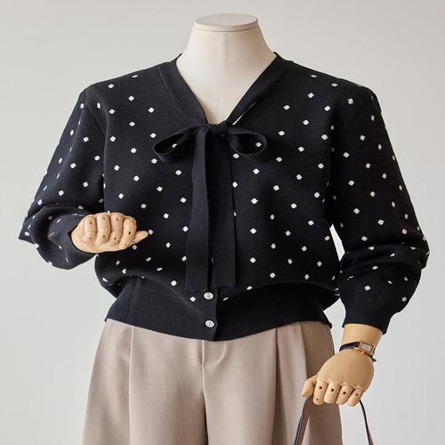 [신상오픈런]여성용 스타일 도트 패턴 미니 스카프 크롭 니트 가디건