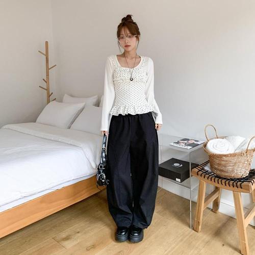 [다잇템]여자 카디건 리본 프릴나시 땡땡이 세트 (45904740)