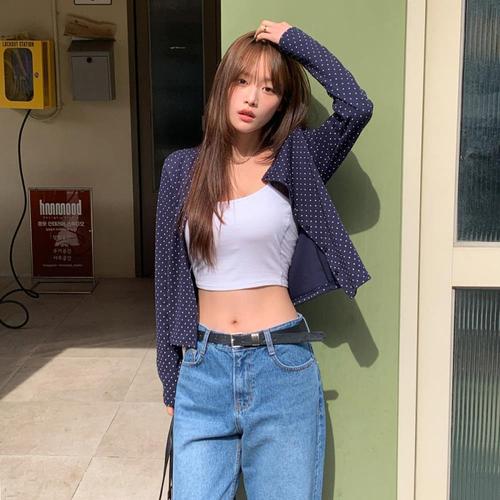 |KHJ6D88|여성용 봄 여름 코튼 점프 도트 슬림핏 세미 크롭 가디건