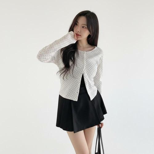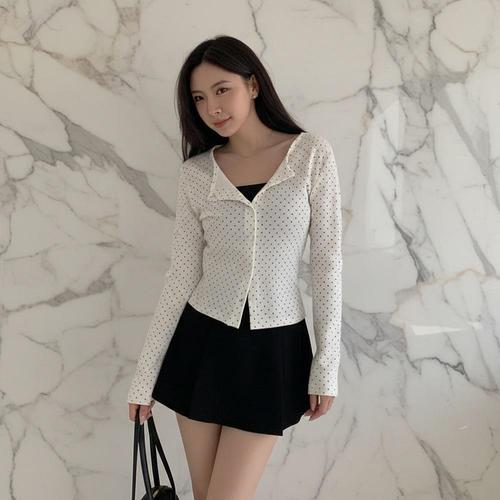 [옷자락] 여자 데일리 데이트룩 여리핏 도트 긴팔 가디건