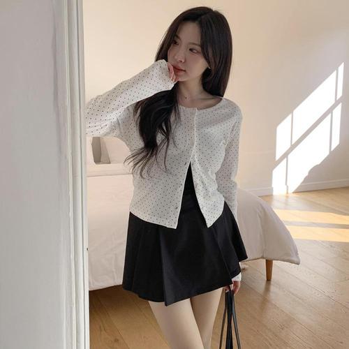 [신상오픈런]여성용 데일리 스타일 여리핏 도트 패턴 긴팔 니트 가디건