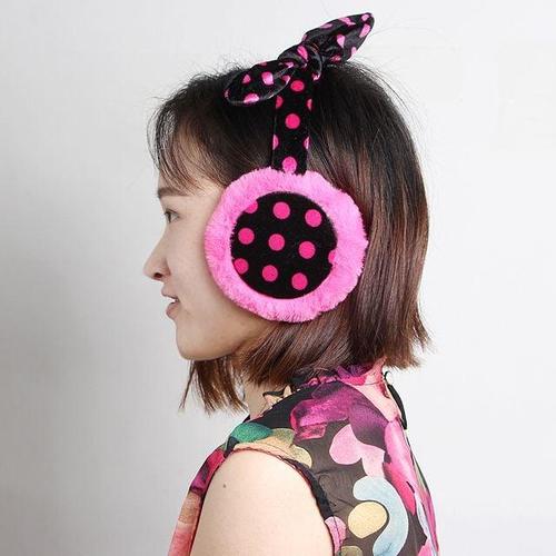 도트 리본 귀마개 겨울용 털귀마개 핑크 WFHJHME