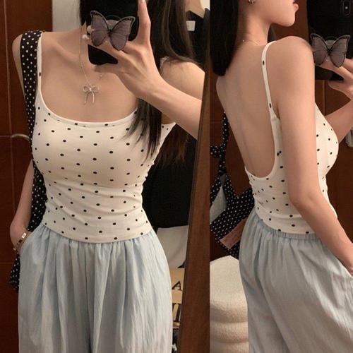[오너클랜]인기상품 U라인 캡포함 백오픈 도트 패턴 여성 나시티 [WFLHZUN_260227]