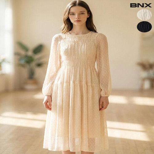 [비엔엑스]여성 도트 스모크 시스루 롱 원피스