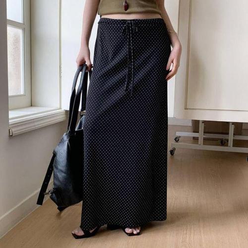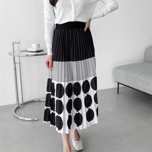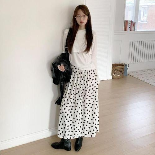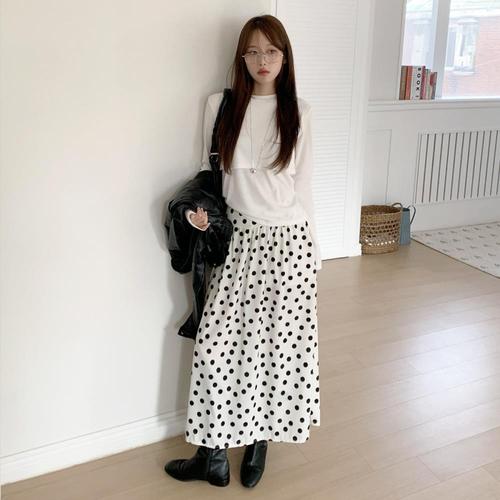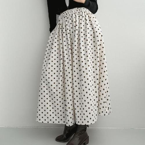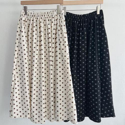 [옷자락] 여자 편안한 데일리 도트 밴딩 롱스커트