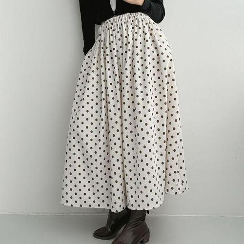 [신상오픈런]여성용 봄철 도트 패턴 맥시 롱 스커트 밴딩 골덴 치마