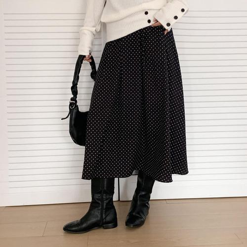 [시크블랙]안디오 도트 셔링 플레어 롱 스커트