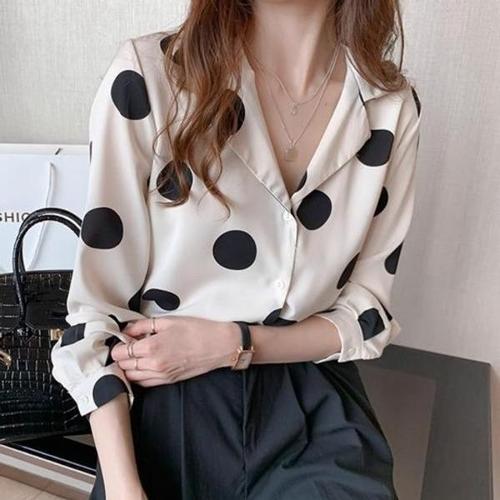 가을 필수 소장각 차이나카라 도트무늬 긴팔 블라우스