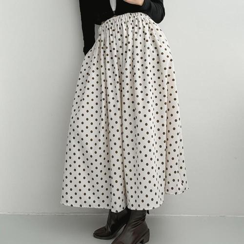 옷자락 / 여자 봄 플레어 골덴치마 밴딩 도트 맥시 롱스커트