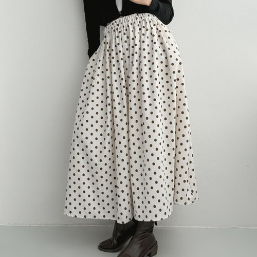 [옷자락]여자 봄 플레어 골덴치마 밴딩 도트 맥시 롱스커트