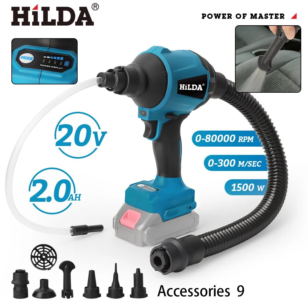 HILDA 브러시리스 더스터 압축 공기 송풍기 전기 팽창기 먼지 제거 및 진공 청소 먼지 제거 기계 마키타 18V 배터리용
