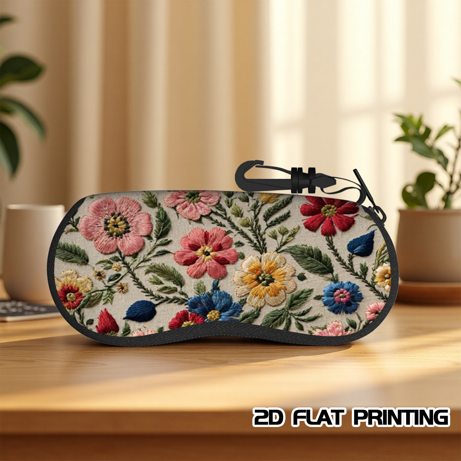 TEMU 손수 제작된 꽃무늬 자수 안경 케이스 - 화려한 핑크, 레드, 블루 & 그린 꽃무늬 디자인으로 스타일리시한 여행 액세서리, 남성용으로 내구성과 미학적인 감동을 선사하는 독특한 선물 아이디어, 스타일리시한 안경, 장식적인 자수, 예술적인 자수
