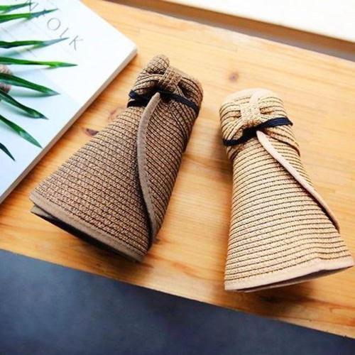 리본 챙넓은 와이드 오픈 휴대용 돌돌이 버킷햇 모자