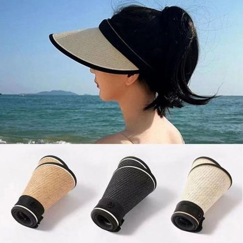 여성 여름 UV 차단 밀집 라탄 돌돌이 썬캡 모자 밀집모자 자외선차단모자 돌돌이모자 여성썬캡 여성여름모자