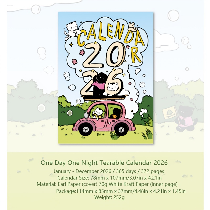 TEMU 2026 귀여운 고양이 & 자동차 디자인 미니 캘린더 - 핑크색 자동차 & 고양이 일러스트가 있는 월간 플래너, 날짜별 종이, 학생 및 사무실 사용에 이상적, 귀여운 캘린더
