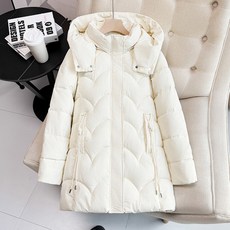 해피유통 여성 가을겨울 두꺼운 패딩 후드 긴 외투