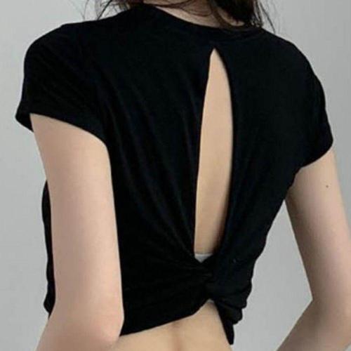 필라테스 예쁜 요가 운동복 반팔티 뒤트임 상의 여자 빽절개반팔티