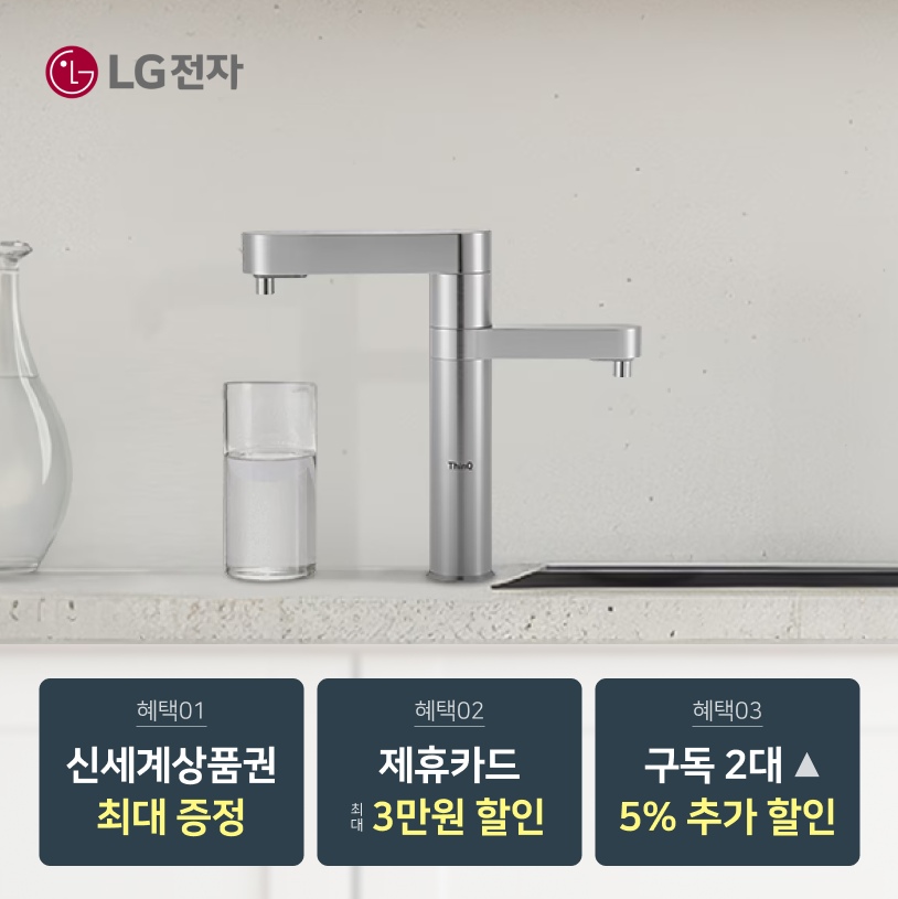 [LG공식] 정수기&가전 구독/렌탈 상품권 최대 혜택 보장! 6개월 50%+타사보상+리뷰선물까지~ 공기청정기/세탁기/건조기/스타일러/식기세척기/인덕션/냉장고/에어컨/안마의자 등