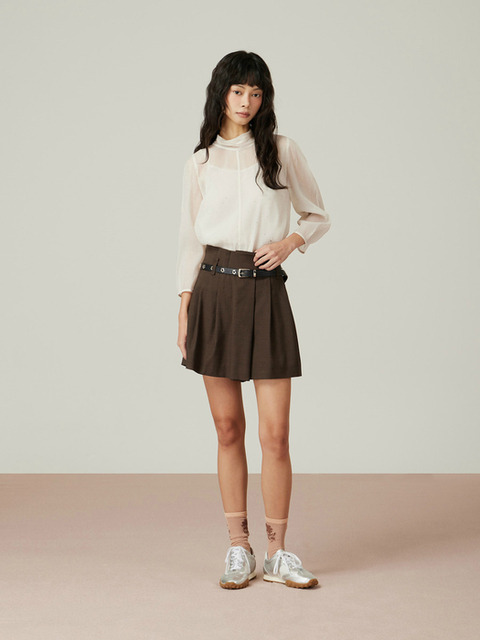 [듀엘]볼륨 슬리브 디테일 크링클 집업 블라우스 D252MSC057