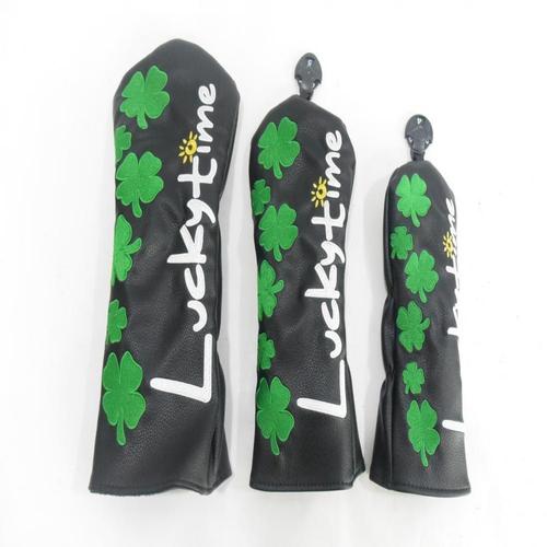 럭키타임 LUCKY TIME 드라이버, 우드, 유틸리티 헤드커버 3종 세트 블랙