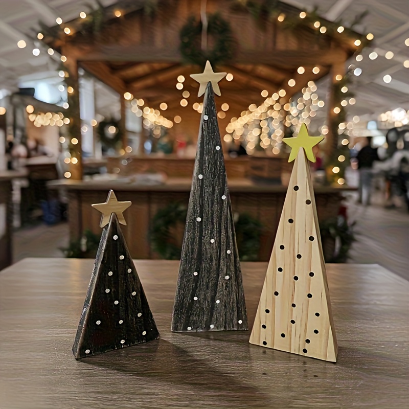TEMU 스타일 소나무 크리스마스 트리 세트 3개 - 러스틱 & 데코, 별 장식 포함, 선반, 창가 및 테이블 장식 | 모든 방에 어울리는 아늑한 선물, 전기 불필요, 크리스마스 장식