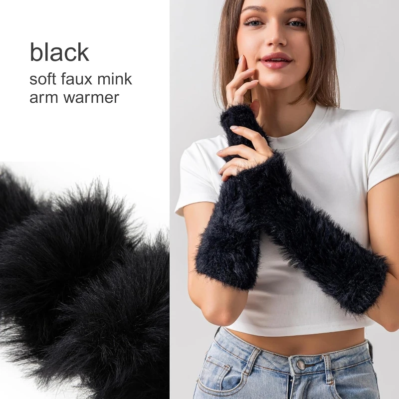 여성용 겨울 팔토시 워머 일본 레저 야외 Y2K 워머 소녀용 벨벳 손가락 없는 장갑 니트 팔토시