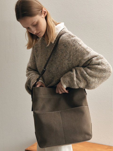 [드메리엘] 투 포켓 호보 캔버스백 빈티지 브라운