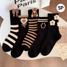 브리지온 올웨이즈 포근 크루삭스 데일리 러닝 헬스 스포츠 장목 양말, 블랙, 5세트