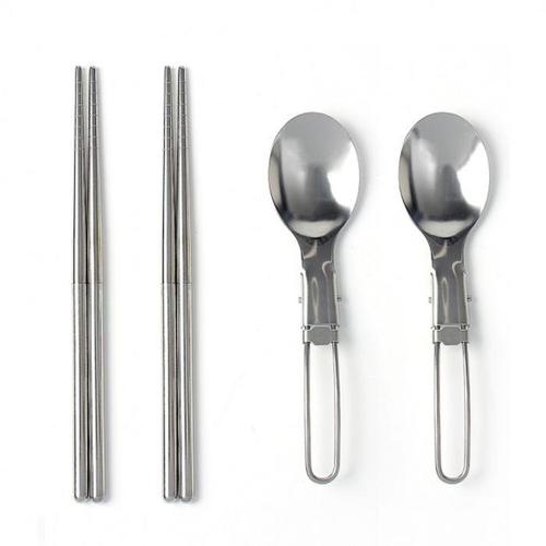 MKL 등산 캠핑 스텐레스 접이식 수저세트 2인용