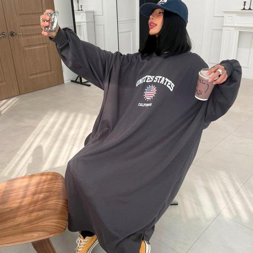 [신상오픈런]여성 기모 후드 롱원피스 빅사이즈 레터링 등원복 (44091920)