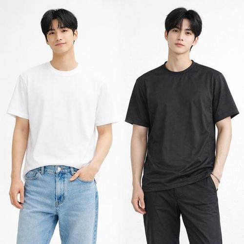 [디바옴므]여름 시어서커 세미 오버핏 쿨링 반팔 스판 라운드 티셔츠 아이스 남자 남성