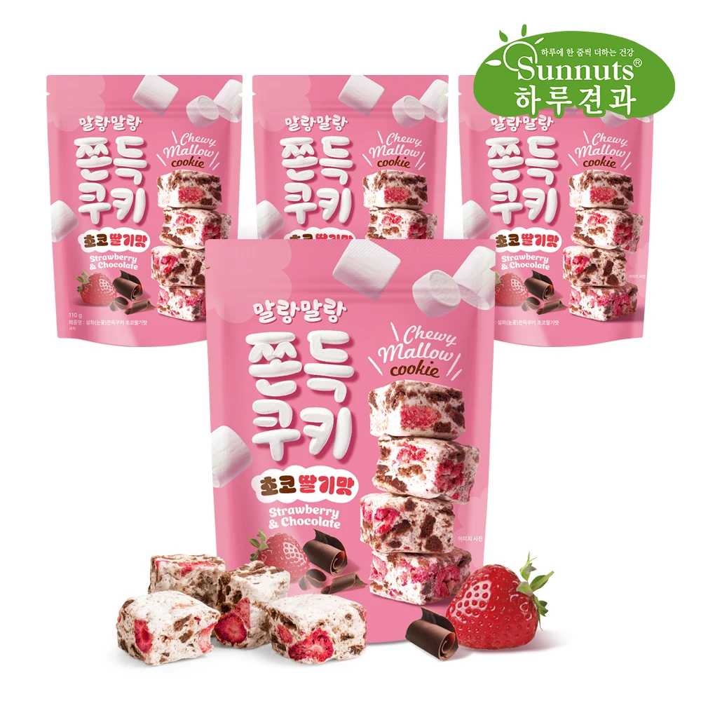 [하루견과] 요즘핫한간식! 말랑 쫀득쿠키 초코딸기맛110gx4봉