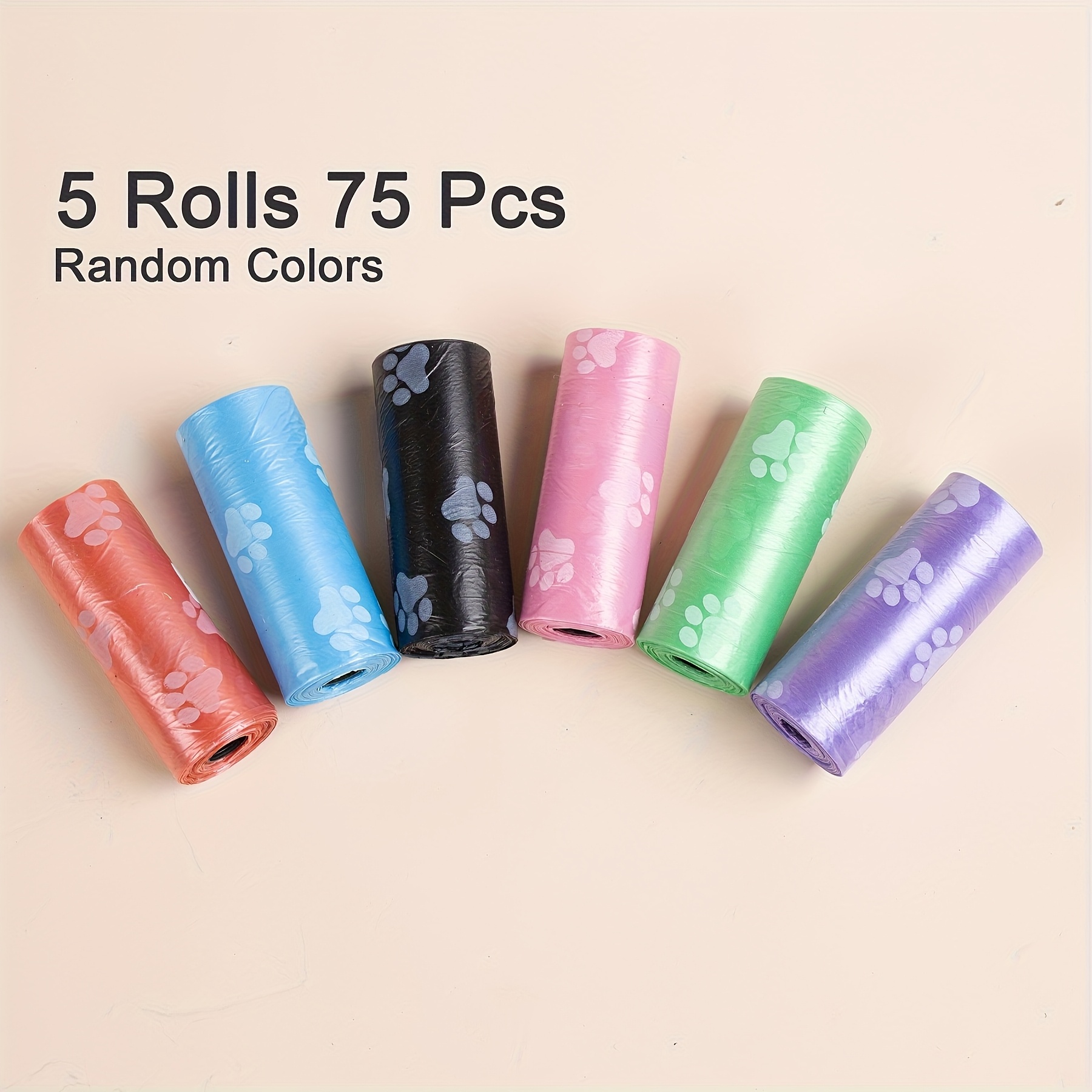 TEMU 75팩 헤비듀티 누수방지 강아지 배변봉투 - 발바닥 & 뼈 무늬, 쉽게 찢어지는 폴리에틸렌 펫 배변봉투, 개별 포장 롤 (4.41LB 용량) 대형견, 강아지, 야외 산책용 - 멀티컬러 어소트먼트