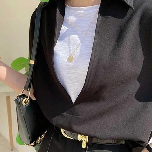 [오노마] ONM 여성 프렌치 레이어드 셔츠 오피스 출근룩 딥 브이넥