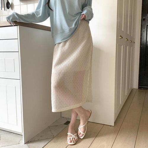 [다잇템]여자 클래식 슬릿 봄여름 비침 땡땡이 스커트