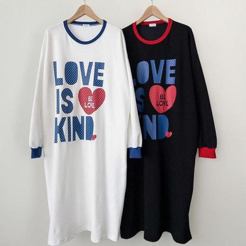 [신상오픈런]여성용 도트 프린트 배색 롱원피스 박시핏 홈웨어