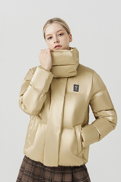 [PIGC] 여성 탈부착 머플러 점퍼 패딩 다크 베이지 (LFC640554)