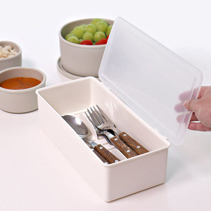 수저정리함 뚜껑있는 사각 수저통 수저보관
