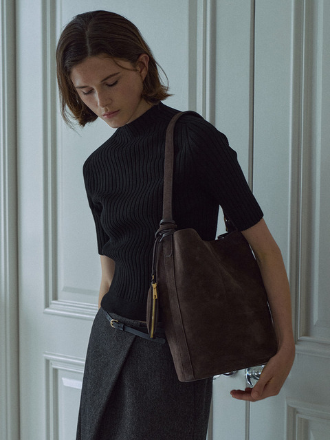[라메레이] 폭스 벌룬 하프 슬리브 니트탑_다크 그레이