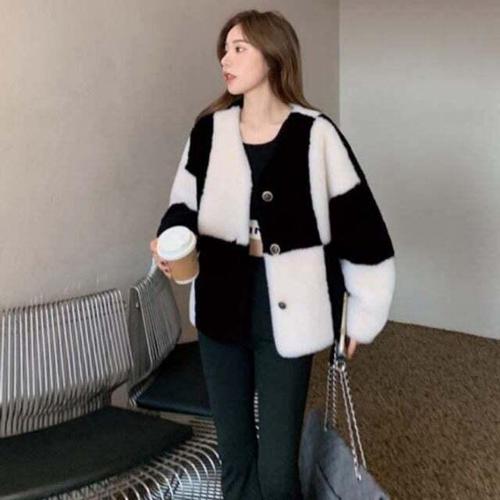 [셀럽하우스]체크 VVSZ9676 여성 데일리 반코트 숏 보온 코트 여자재킷 흑백