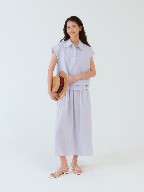 [스윗비터] [SET] 테리 스트라이프 슬리브리스 & 랩스커트_라벤더