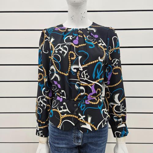 [벨리시앙]밴딩 디테일 라운드넥 프린트 블라우스 BL4105