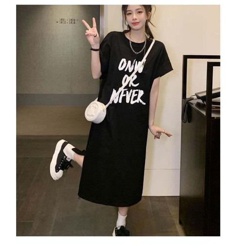 [셀러허브_여성트랜드패션]ONM 2가지색상 캐주얼 레터링 라운드넥 롱기장 반팔티
