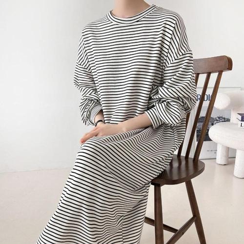 [샵앤][샵앤] 국산 여성 라운드 밑단 줄배색 박스 롱원피스 ARA-WDR-4948-블랙