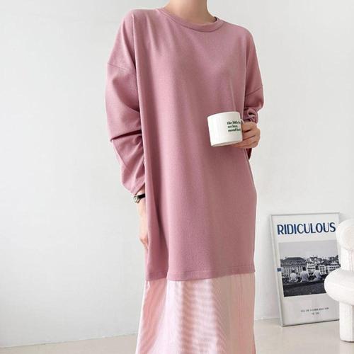 [샵앤][샵앤] 국산 여성 라운드 밑단 줄배색 박스 롱원피스 ARA-WDR-4948-핑크