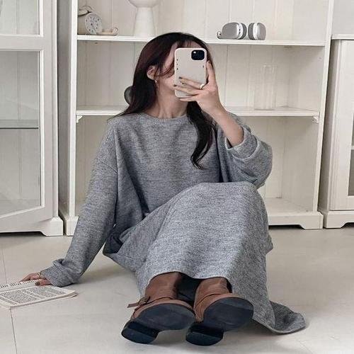 시연 가을 겨울 후드 골지 니트 롱 원피스 스웨터 스커트