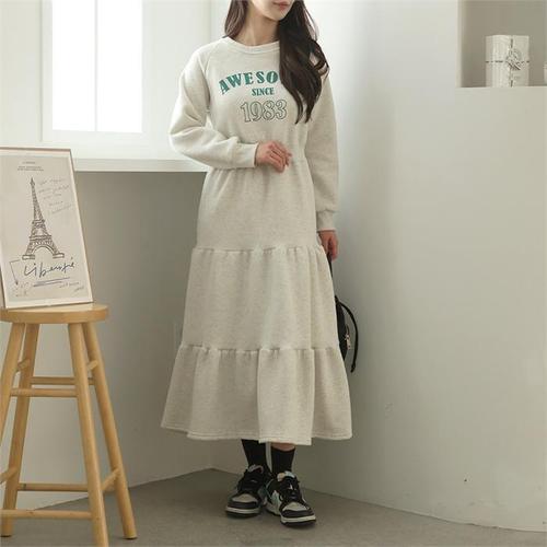 [옷자락]여자 간절기 루즈핏 맨투맨 라운드 롱원피스