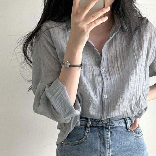 [오너클랜]인기상품 여름 여성 긴팔 데님 셔츠 블랙 프릴 쉬폰 봄가을 라이트 남방 [WFLKR0M_260303]