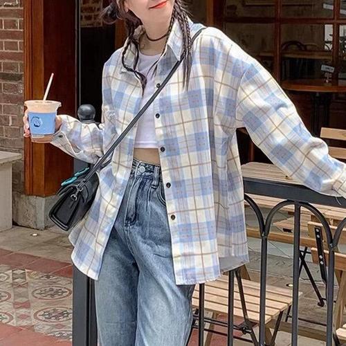 [굿쇼핑몰_의류]2컬러 여성 라이트 체크 긴팔 셔츠