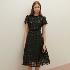TEMU 여성용 블랙 앤 화이트 체크 3D 플로럴 드레스, 여름 캐주얼 휴가 스타일, 러플 스윙 A라인 드레스, 세탁기 사용 가능